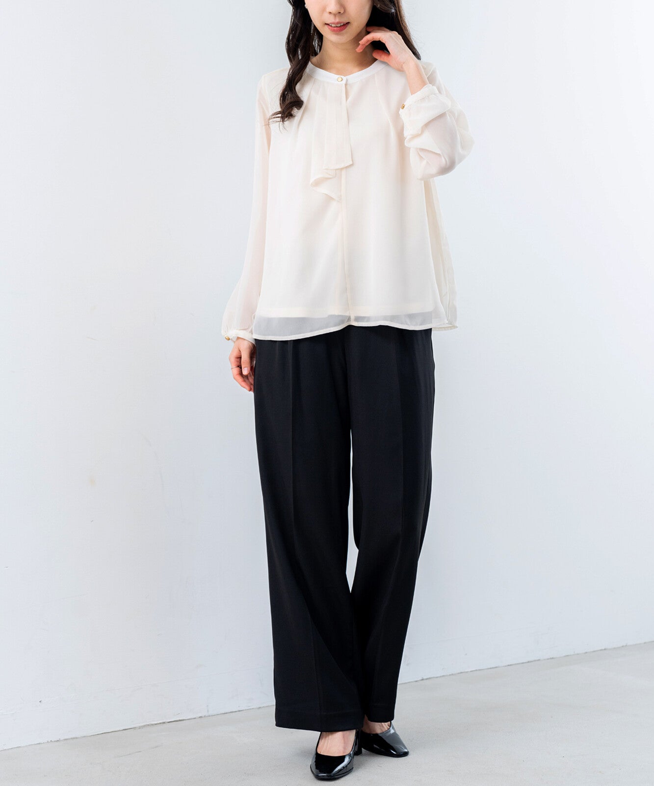 雪紡拼色蝴蝶結襯衫